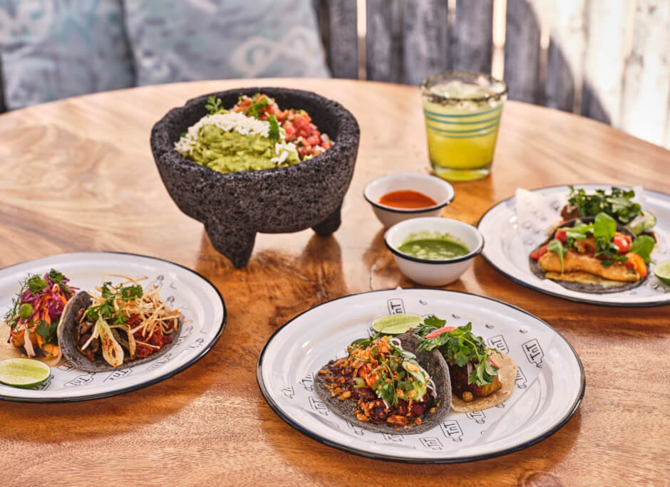 Our beachside taco bar is all about fun: there are shots of Sotol, Mexican games like Loteria and our floating bartenders ring a bell when they head out to the pool with cocktails. Authentically prepared tacos are filled with juicy al pastor and crisp deep-fried shrimp, and our new vegan tacos use the freshest flavors from local farms.