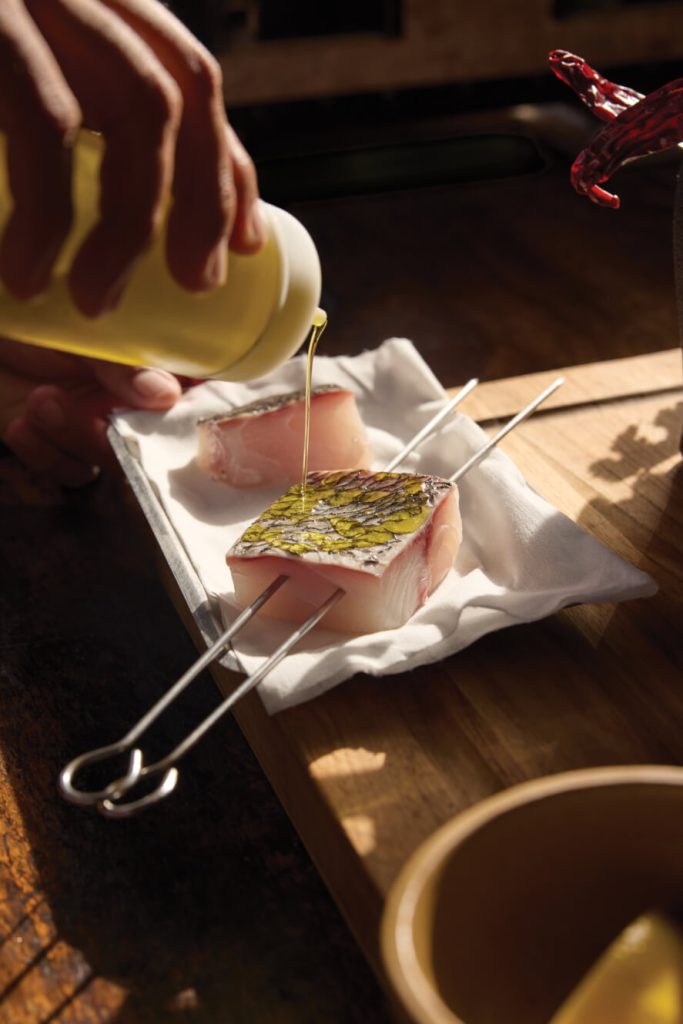 But through concentrated efforts, the totoaba population is growing again. Mucharraz sources totoaba in nearby La Paz from Earth Ocean Farms, a leading regenerative aquaculture company that is one of several organizations working with Mexico’s Secretariat of Environment and Natural Resources and National Commission of Aquaculture and Fishing to repopulate the species. By sustainably farming totoaba in a controlled environment, then releasing the largest fish back into the wild, Earth Ocean Farms has effectively reintroduced the species back into its natural habitat. The smaller fish, meanwhile, are consumed—with the proceeds going back into the farm’s efforts.