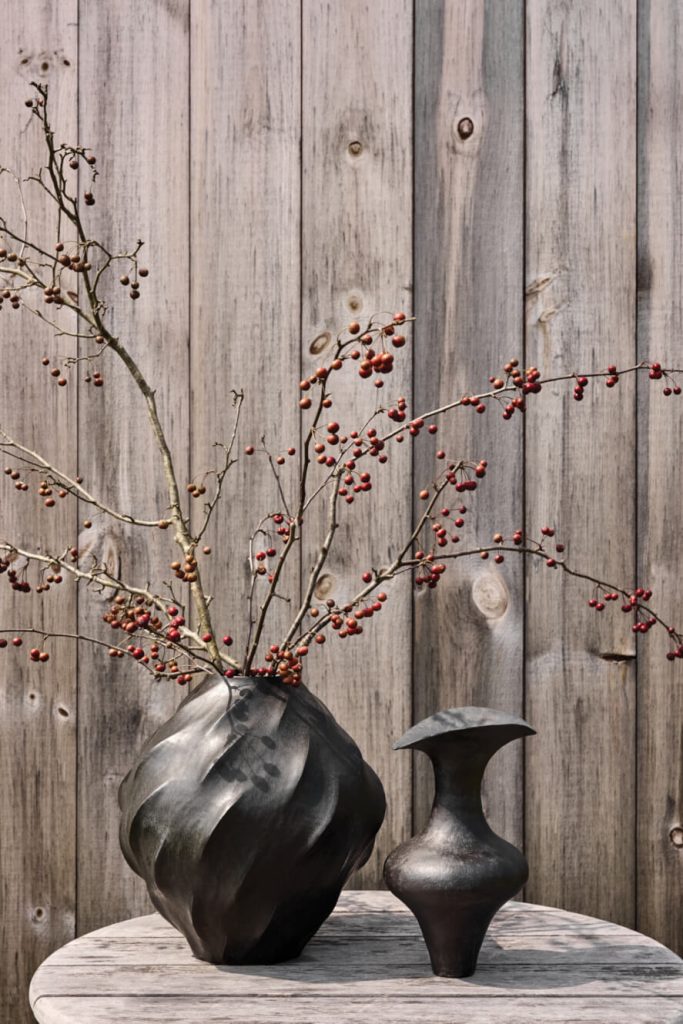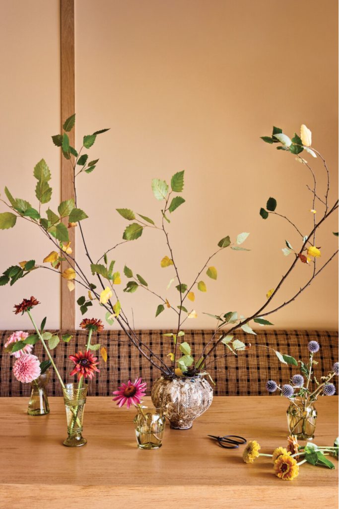 Sway Ceramics stoneware vase, Bollenglass bud vases, and Banshu Hamono Koryu Ikebana scissors.