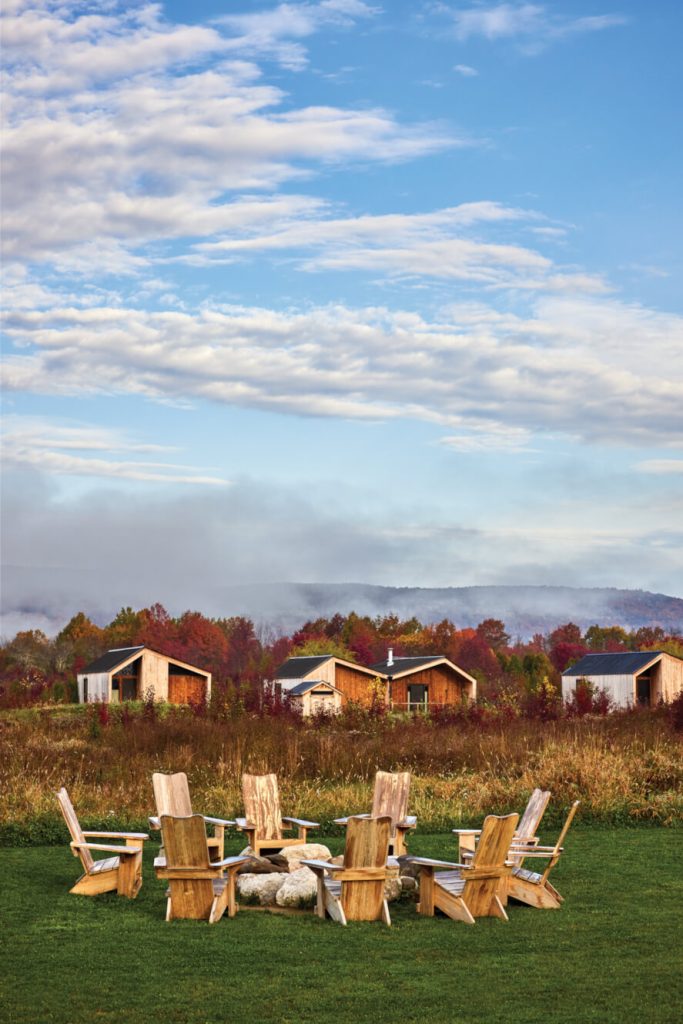 This philosophy guided the creation of Wildflower Farms’ 65 contemporary cabins and suites, where bespoke furnishings mingle with curated antiques, each piece reflecting the region’s distinctive character. It’s all in the details: Ward even photographed the landscapes across the resort’s 140 secluded acres to replicate their hues in custom-woven rugs, ensuring that even the textiles mirror the serene surroundings.