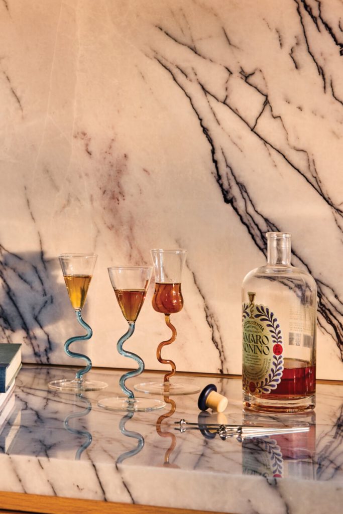 Staver + Gray’s Venetian glass table lamp (wardandgray.com) and River Valadez glasses.
